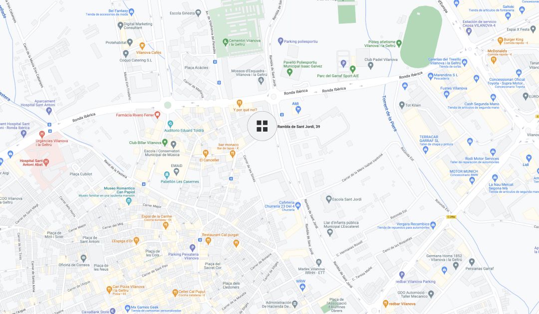 situado en la Rambla de Sant Jordi, 39-41 de Vilanova i la Geltrú, a 5 minutos caminando del centro de la Villa.