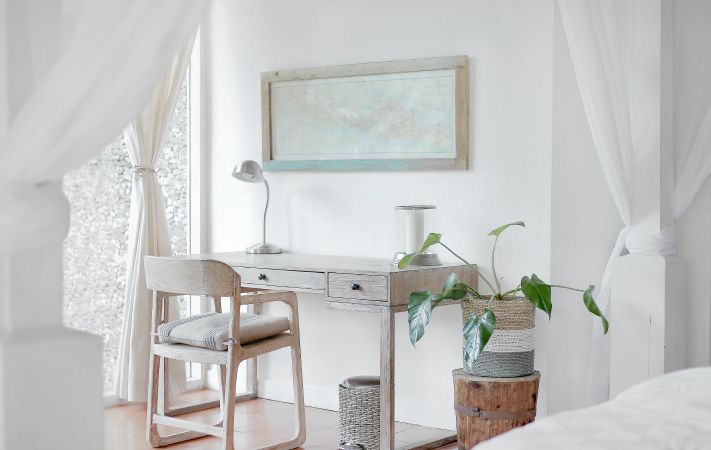Otra opción es incorporar mobiliario de madera natural para crear un ambiente acogedor. No abuses del uso de las maderas y tejidos en las estancias y conseguirás un espacio armónico con el blanco